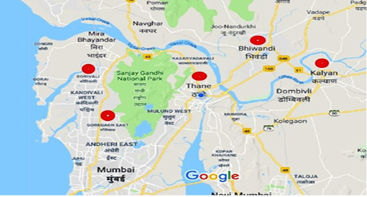 The study area (five regions of Mumbai were included viz., Goregaon, Borivali, Thane, Bhiwandi and Kalyan).