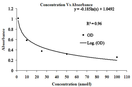 Standard curve for estimation of progesterone concentration