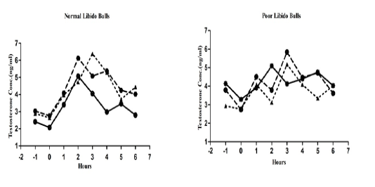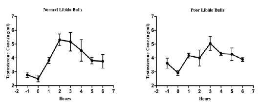 Individual bull testosterone concentration in both the groups before and after GnRH administration.