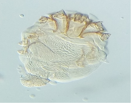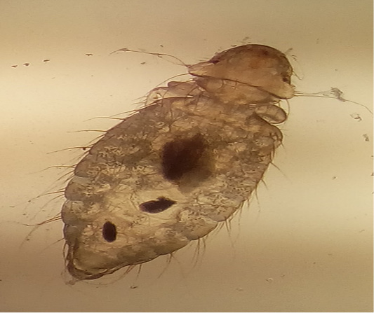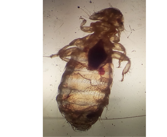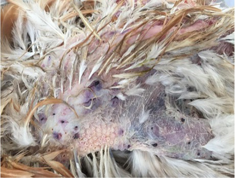 Severe infestation of a free-range chicken by larvae of Argas persicus. (Note hemorrhage zones corresponding to the points of attachment of tick larvae)