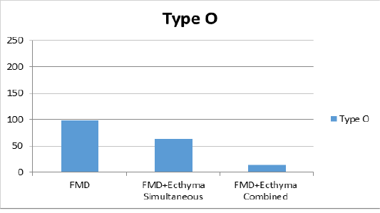 Liquid phase blocking-ELISA antibody titers against FMD (foot and mouth disease) virus type O.