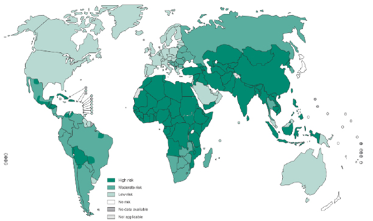Global distribution of high-risk locations for human rabies (WHO, 2018).