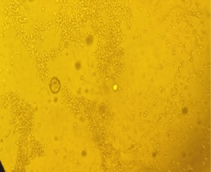 Cyptopathic effect of sheep pox virus on vero cells showed by inverted microscope.