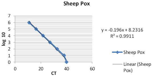Standard curve and the calculation equation for sheep pox virus.