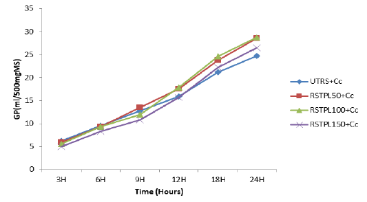 Evolution of the gas produced of the differents diets incubated with goat rumen fluid
