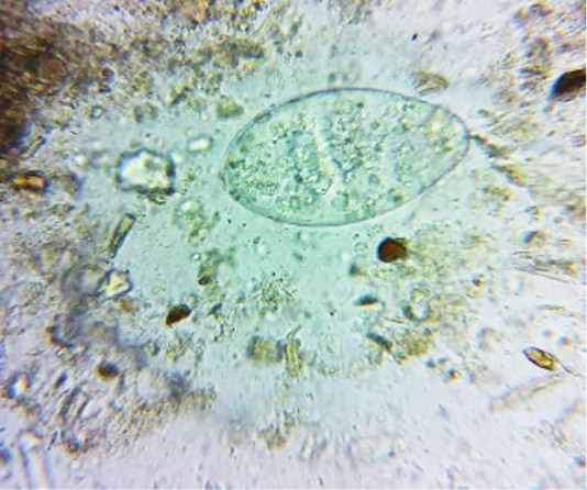 Faeces examination by sedimentation method showed Amphistome eggs (x 400) in three animal.