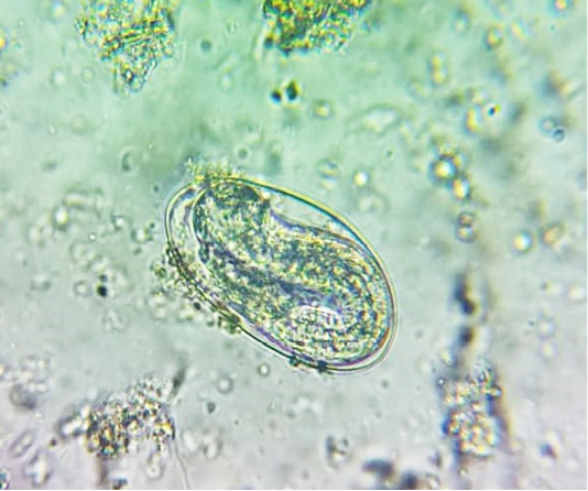 Faeces examination by sedimentation method showed Strongyloides eggs (x 400) in one animal.