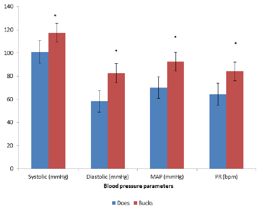 Systolic Pressure, Diastolic Pressure, Mean Arterial Pressure (MAP) and Pulse Rate of Red Sokoto Bucks and Red Sokoto Does
