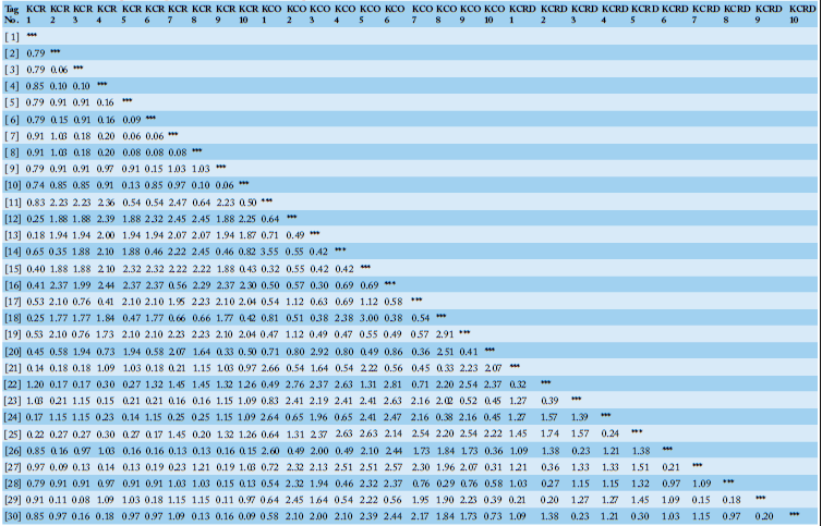 Estimation of pairwise genetic distance between experimental Korean chickens.