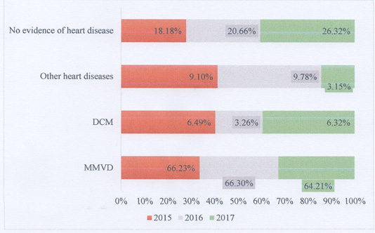 Common canine cardiac conditions diagnosed at Animal Medical Centre, Kuala Lumpur from 2015 to 2017.