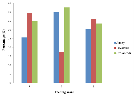 Score definitions: 1: attempting to feed immediately after the feed has been poured in a feed trough 2: attempted to feed but did not finish the feed in the trough, 3: fed and finished the feed