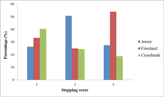 Score definitions: 1: no occurrence of stepping, 2: stepping occurred just once, 3: stepping occurred at least twice or more.
