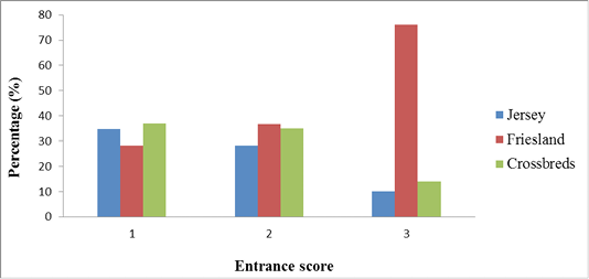 Score definitions: 1: acceptance to enter, 2: defying entrance, 3: the cow needed to be pushed by humans.