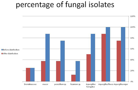 The occurrence of fungal isolates before and after disinfection. (A) before disinfection; (B) after disinfection