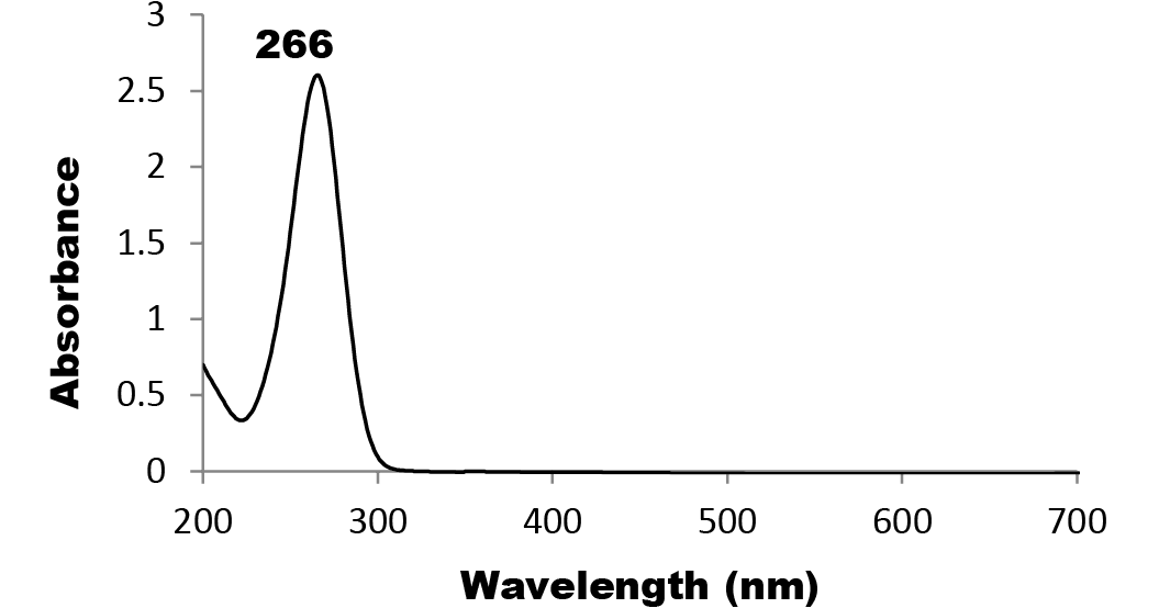 UV-Vis spectrum of Nano Se-Met showing the Se characteristic absorption peak at 266 nm
