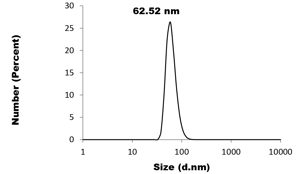 Particle size analysis of Nano Se-Met with average size 62 nm