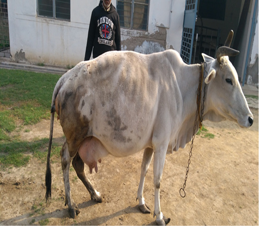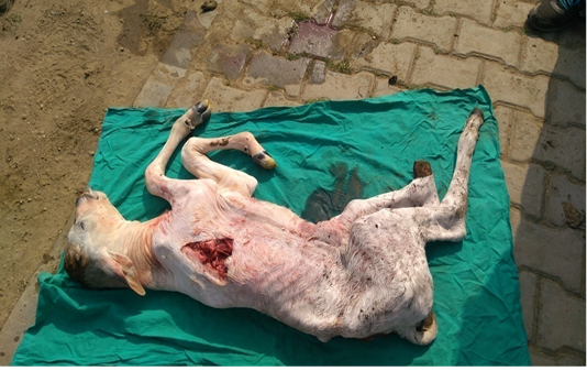 Inclined hind portion posture of the cow suggesting the possibility of pelvic fracture.