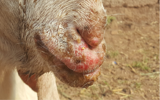 Scabby lesions at mouth area