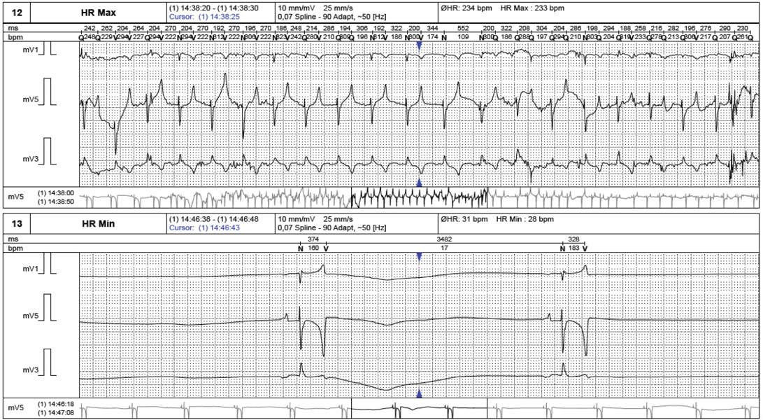 A section of Base-Apex lead ECG signal obtained from holter ECG recording.