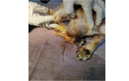 Horizontal mattress suture using nylon with tubing on both lateral side of vulva