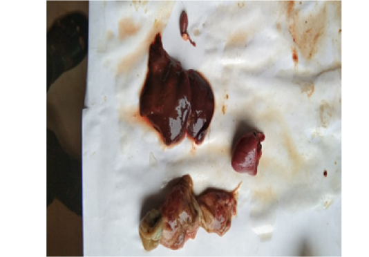 Blue &gold macaw- Liver, heart spleen showing congestion
