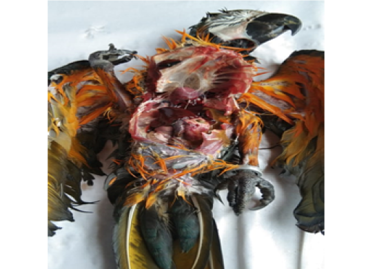 Carcass of a blue & gold macaw Proventriculus- partly intussuscepted into ventriculus
