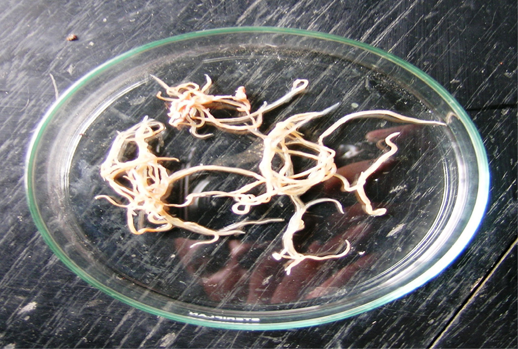 Showing Ascardia galli worms collected from intestine of birds