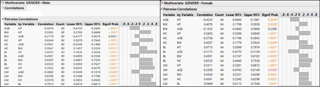 Pairwise correlation between the zoometric measurements in male and female dogs in Maiduguri