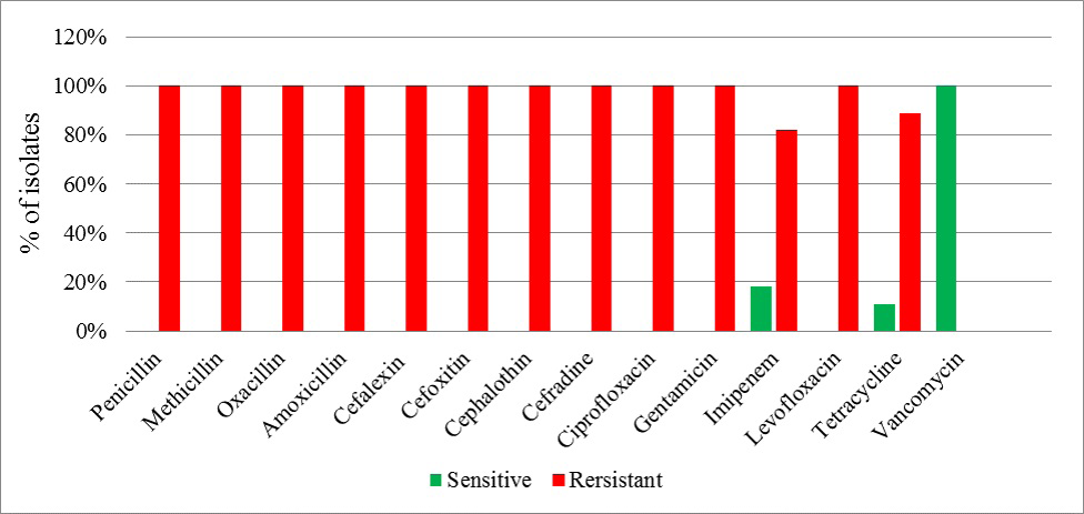 Antimicrobial resistance profile of study isolates against the common antibiotics used in treatment