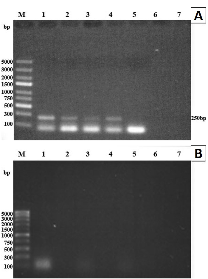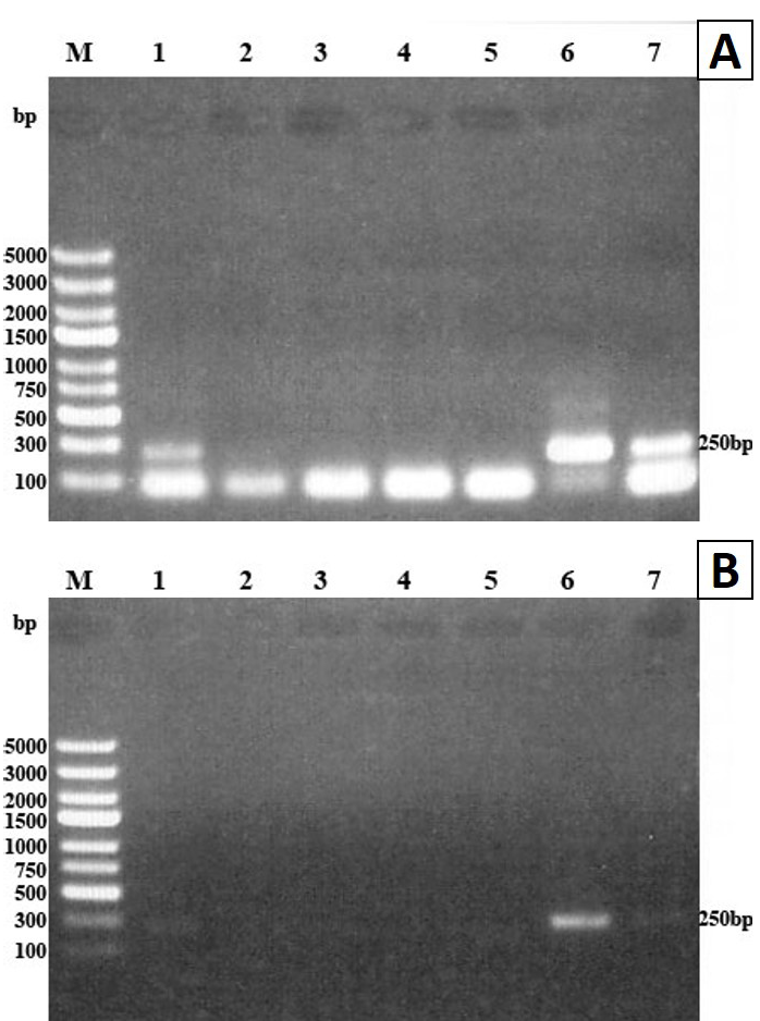 PCR of DNA extracted from T. spiralis muscular larvae using ATP6 primer. PCR products were analyzed by 1% agarose gel and stained with ethidium bromide
