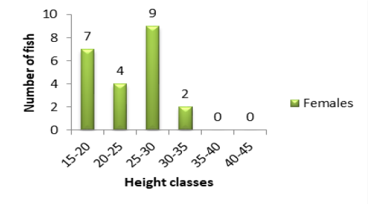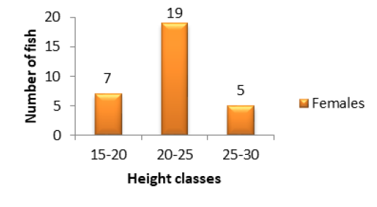 Variation of specimen number in relation to height classes in females of P. obscura Lake Nokoué.