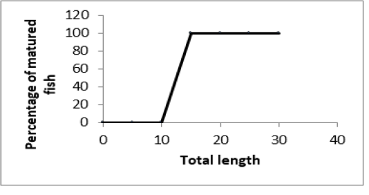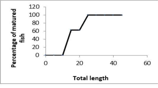 First sexual maturity height in females of P. obscura in Lake Nokoué.