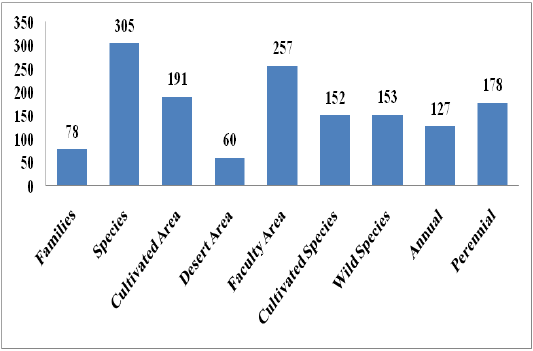 Floristic composition, habitat distribution, wild or cultivated species and life form at Baghdad-ul-Jadeed Campus, IUB.