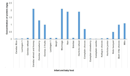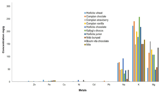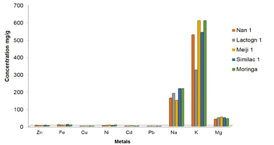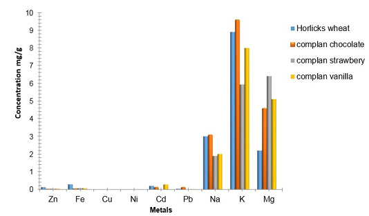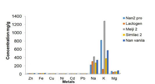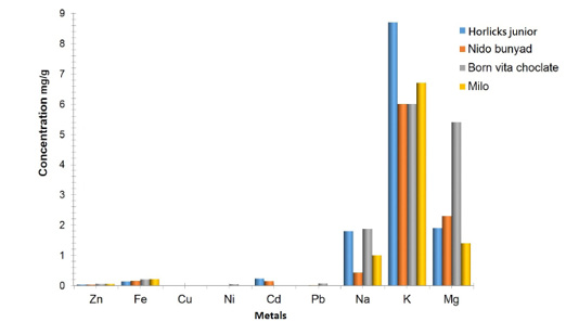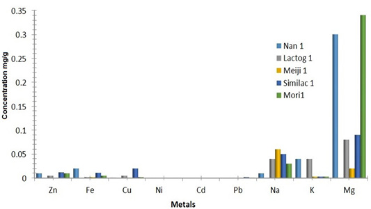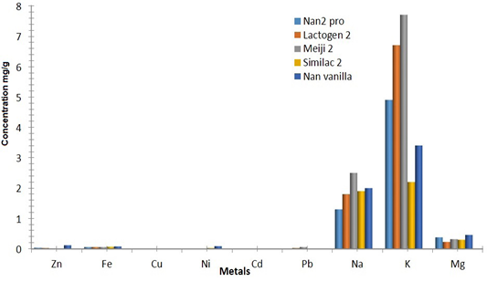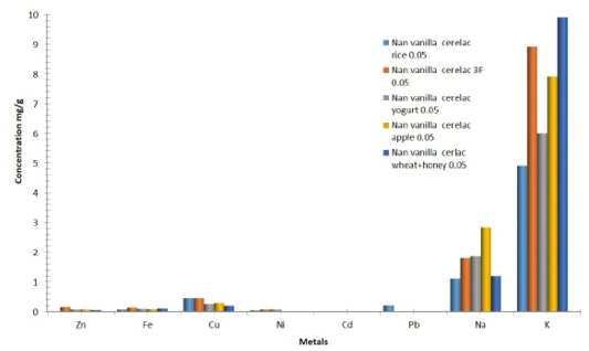 Graphical representation of Metal concentrations in infant starter formula and cereal based baby food.