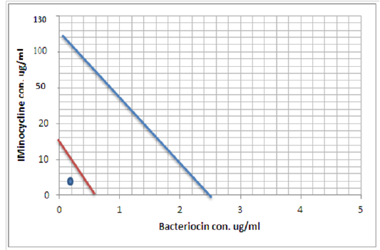 Minimum inhibitory concentration of Minocycline and Bacteriocin before and after combination by Isobolographic analysis