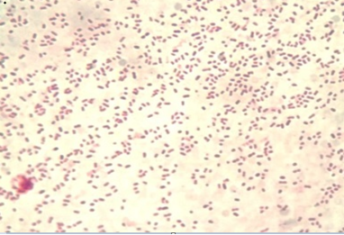Showed Pasteurella multocida as coccobacilli shape and Gram negative stain (1000X)