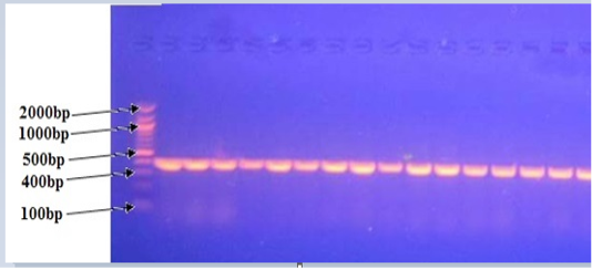 PCR amplification of Pasteurella multocida DNA using PCR 2% agarose (460bp)