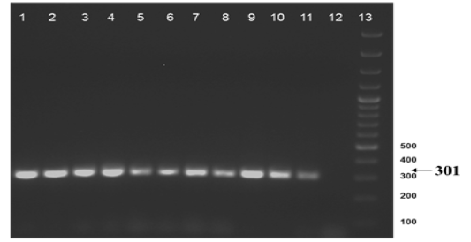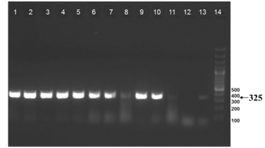 Amplification of gyrB (1410) gene from DNA extracted from cultures of field samples and refernce strains.