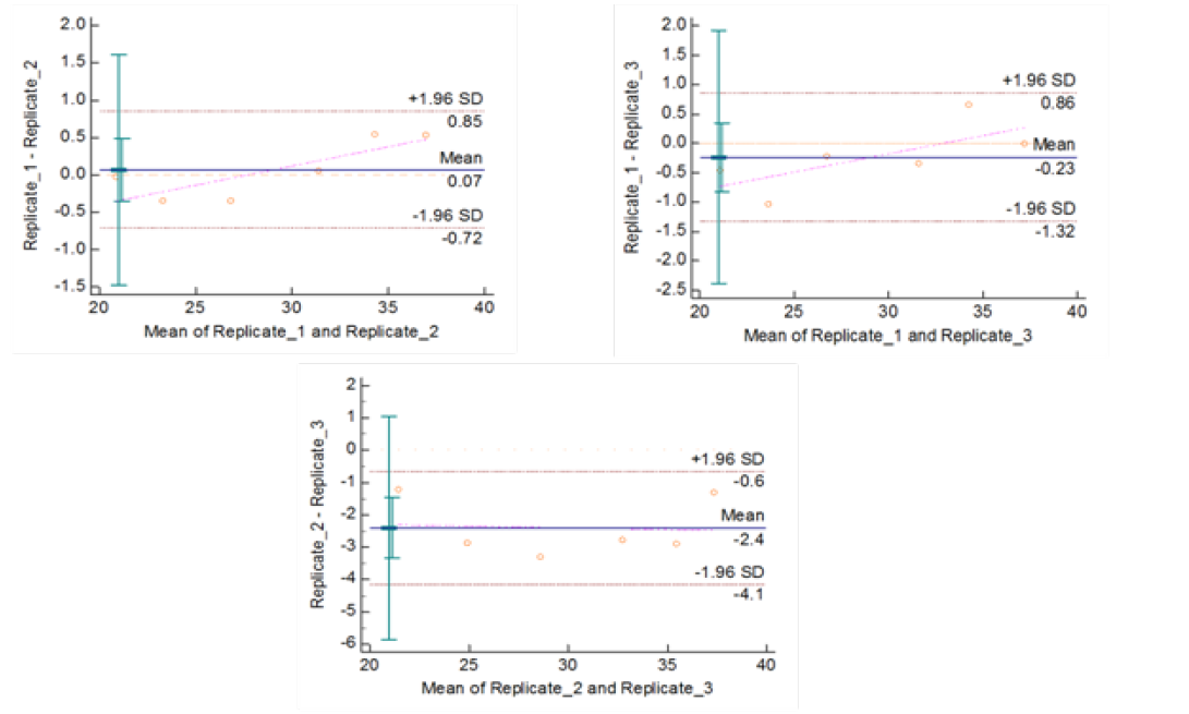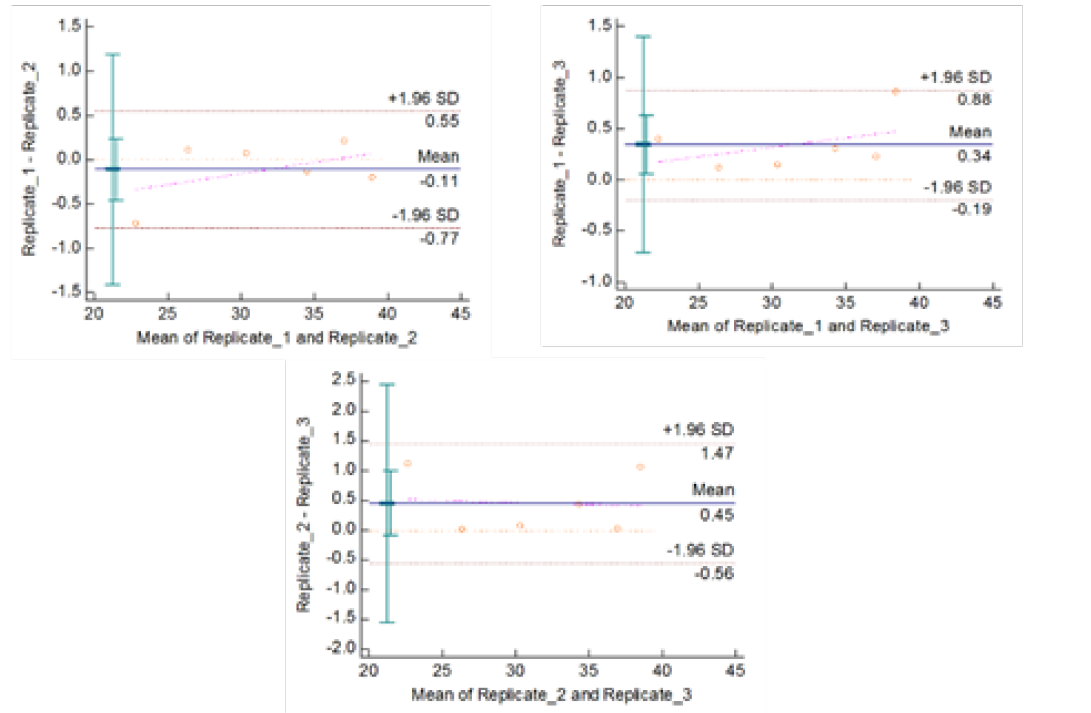 Repeatability of gyrB (1410) Real Time PCR: Variation in mean Cq values between replicates analysed by Bland-Altman Plot