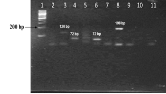 Amplification of gyrA 95 gene from DNA extracted from cultures of field samples and reference strains.