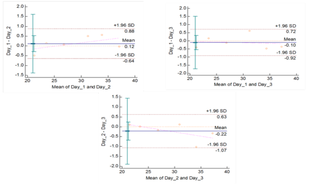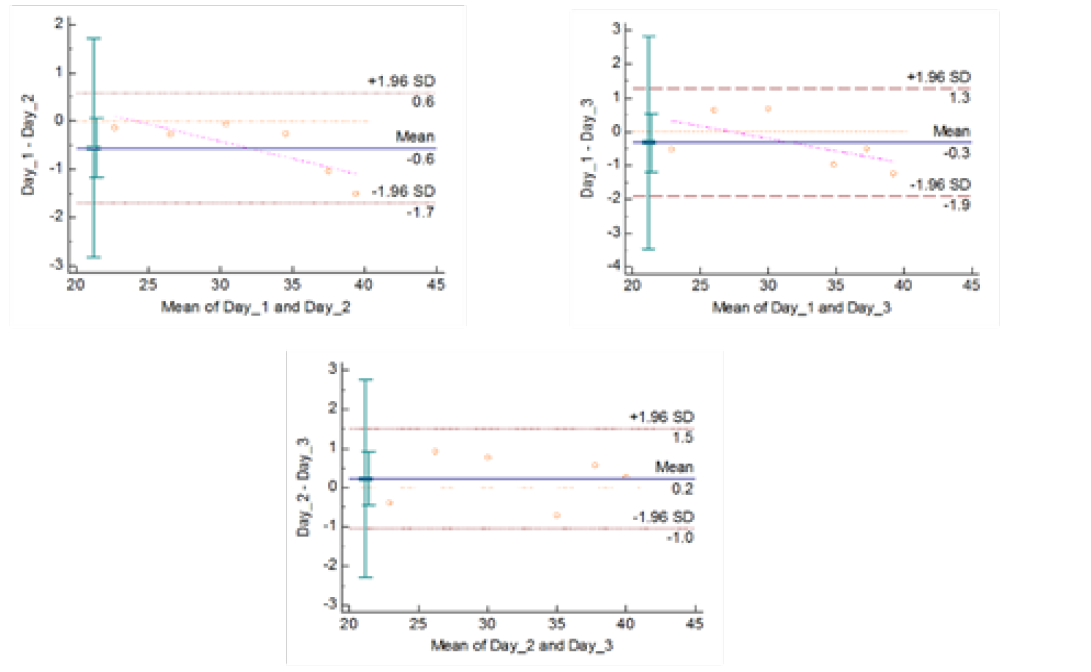 Reproducibility of gyrB (1410) Real Time PCR: Variation in mean Cq values between days analysed by Bland-Altman Plot