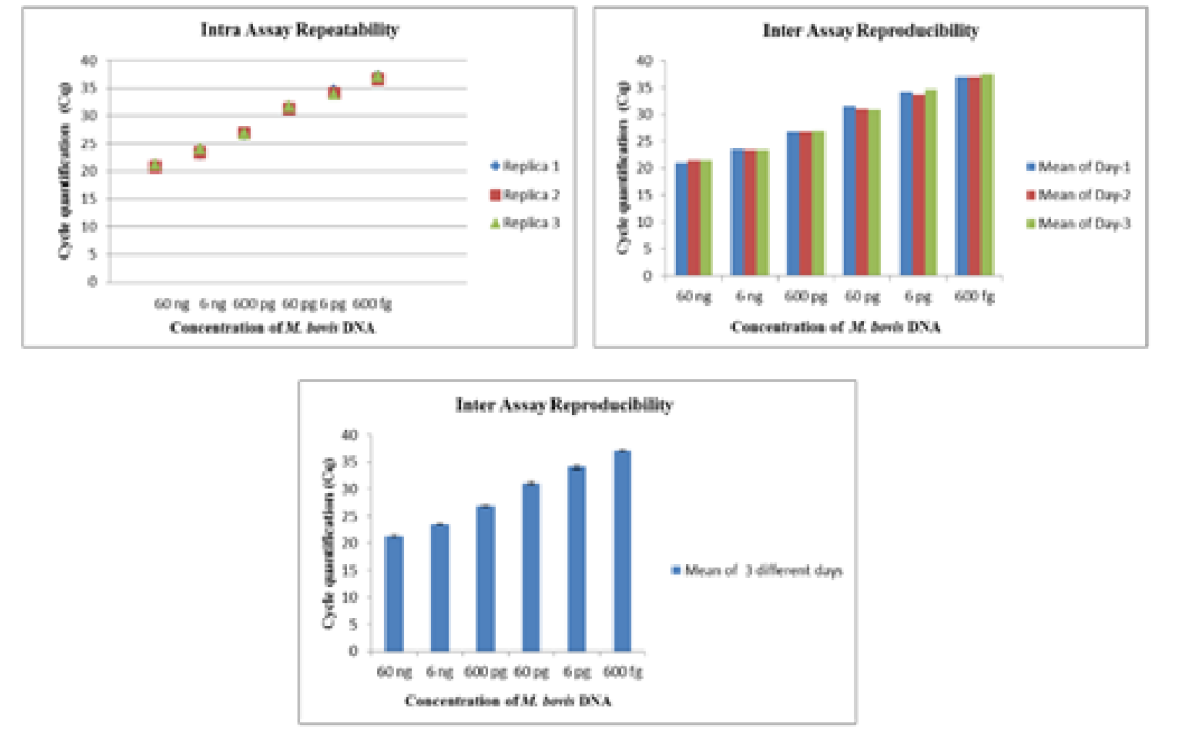 Intra-assay, inter-assay variability from 60 ng to 600 fg for gene target gyrB (1410)