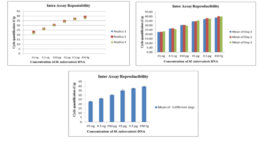 Intra-assay, inter-assay variability from 45 ng to 450 fg for gene target gyrA 95