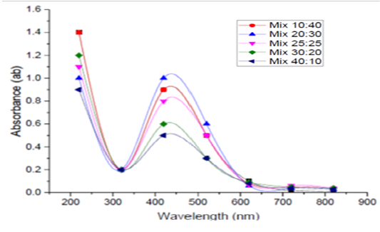 UV- Vis spectra of mixing ratio of culture supernatant and silver nitrate