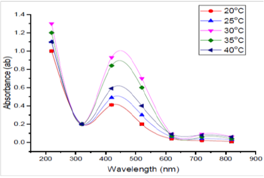 UV- Vis spectra of different temperatures used during SNPs biosynthesis.