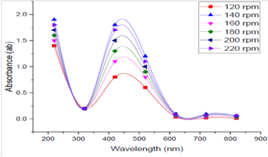 UV- Vis spectra of agitation speeds used during SNPs biosynthesis.