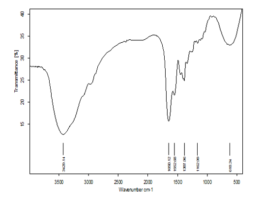 FTIR analysis of the biosynthesized SNPs by the tested bacterium.