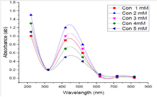 UV- Vis spectra of AgNO3 concentration used during SNPs biosynthesis