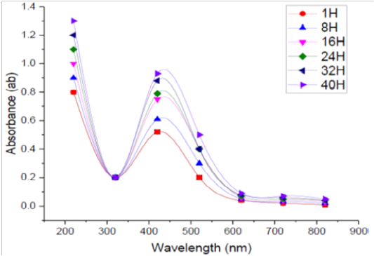 UV- Vis spectra of incubation times used during SNPs biosynthesis