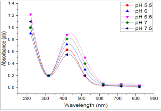 UV- Vis spectra of different pH values used during SNPs biosynthesis.